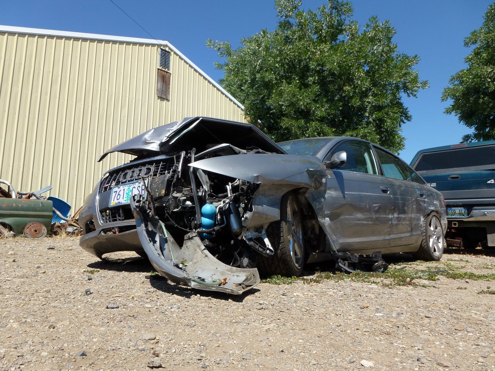 My Folks made it half way home to Portland before having a single car wreck,ricocheting between the guard rails at 80 and then flying off the lonely stretch of I-5 and clobbering a tree. Broken ankle,Mum, broken elbow,Dad,and lots of very sore ribs. Thank you Audi ,they're alive.